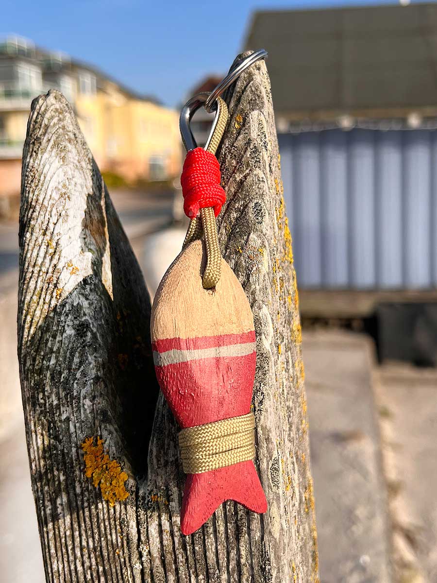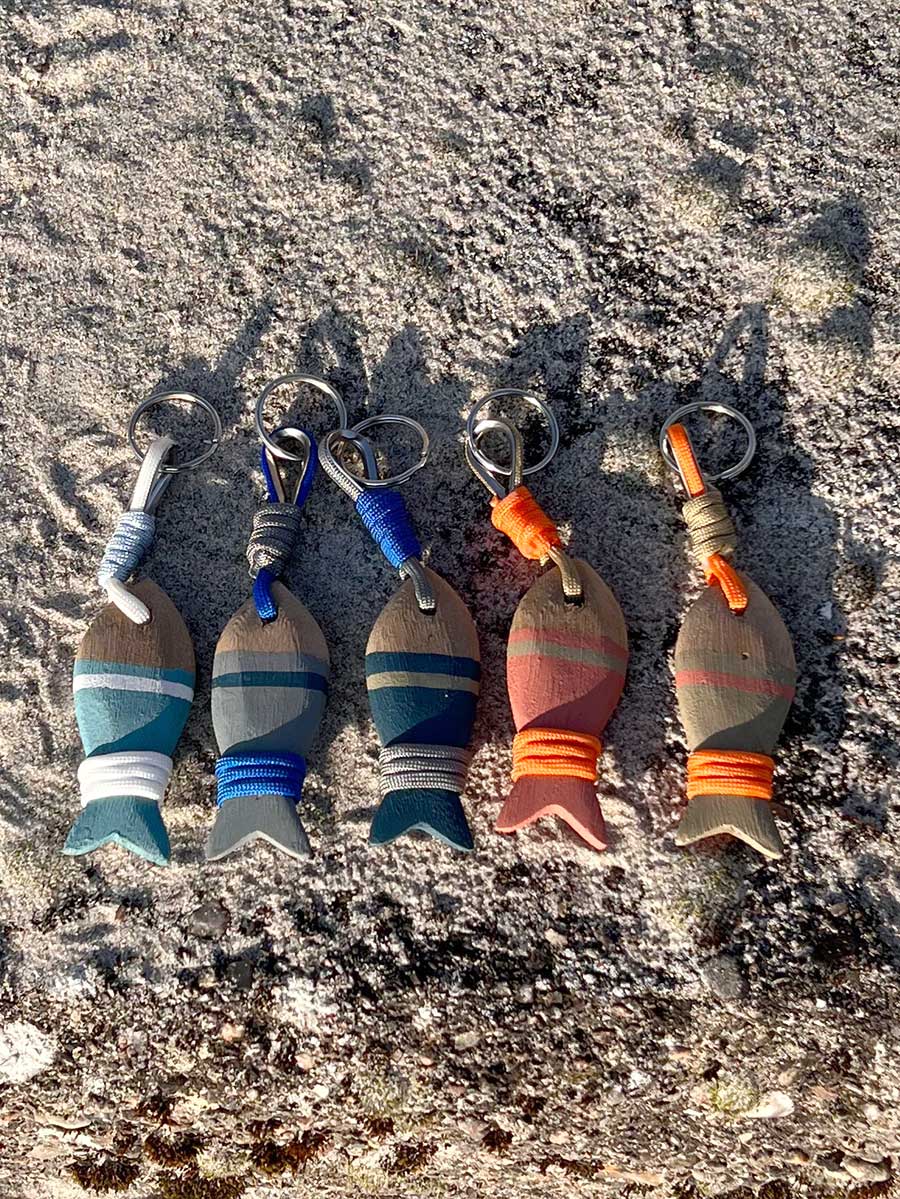 Maritimer Schlüsselanhänger Holzfisch mit Schlüsselring. Ein hübsches kleines Mitbringsel im maritimen Design.