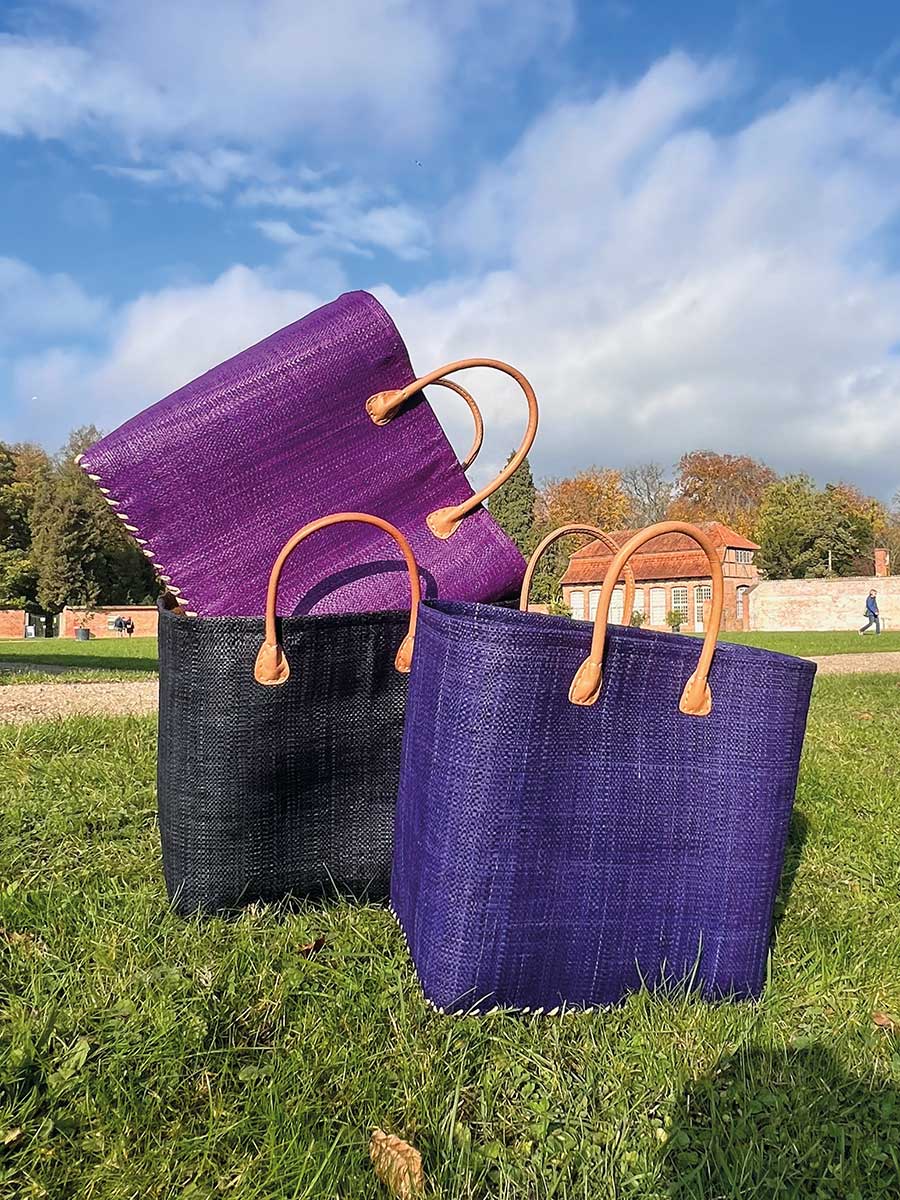 Eleganter Shopper von frosch & rabe aus Palmblattfasern in schwarz mit bequemen rund genähten Lederhenkeln. Jede Tasche ist ein handgefertigtes Einzelstück / Naturprodukt.