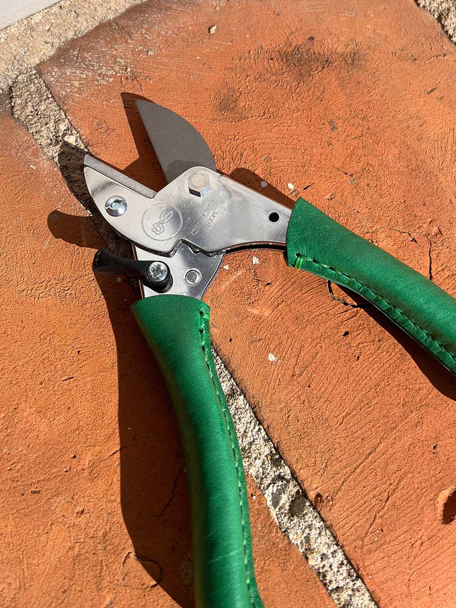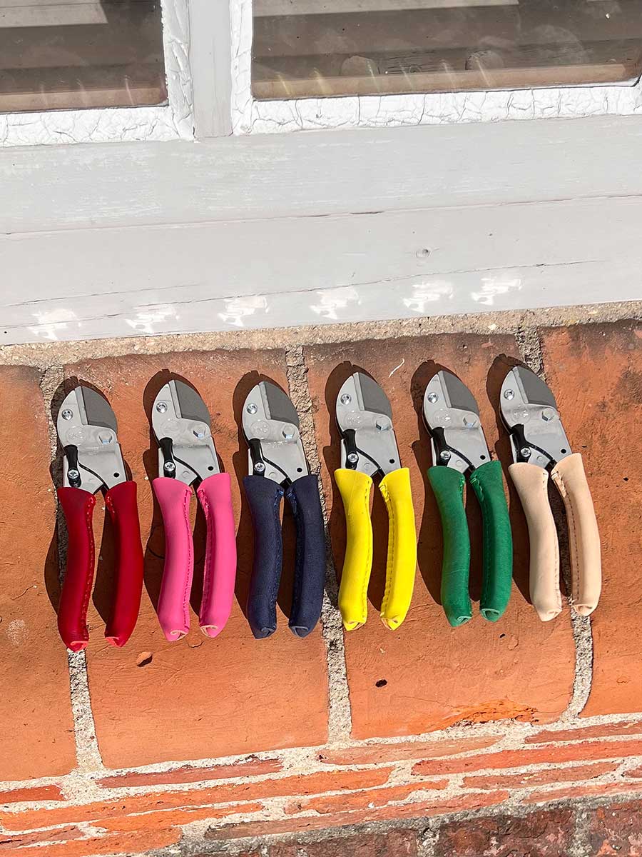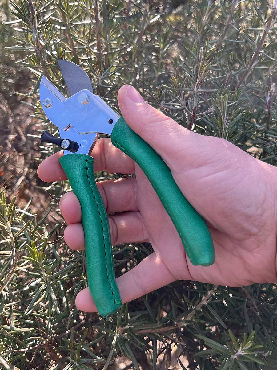 Premium Gartenschere mit handvernähtem Kalbsledergriff, für Rechts-und Linkshänder geeignet, ergonomisch geformt. Leichtgängige Amboss-Schere mit Hochleistungsfeder. Für die Markengründer Julie Elisabeth Habermeyer und Florian Kibbel ist es unerläßlich, dass ihr Produkt nachhaltig und langlebig ist. In Zusammenarbeit mit Gartenfachleuten und Werkzeugherstellern ist es gelungen, eine unvergleichliche Gartenschere vollständig in Deutschland herzustellen. Bis zu 1 Million Schnitte scharf. Die Ledergriffe werden durch direkten Hautkontakt rasch Patina ansetzen.