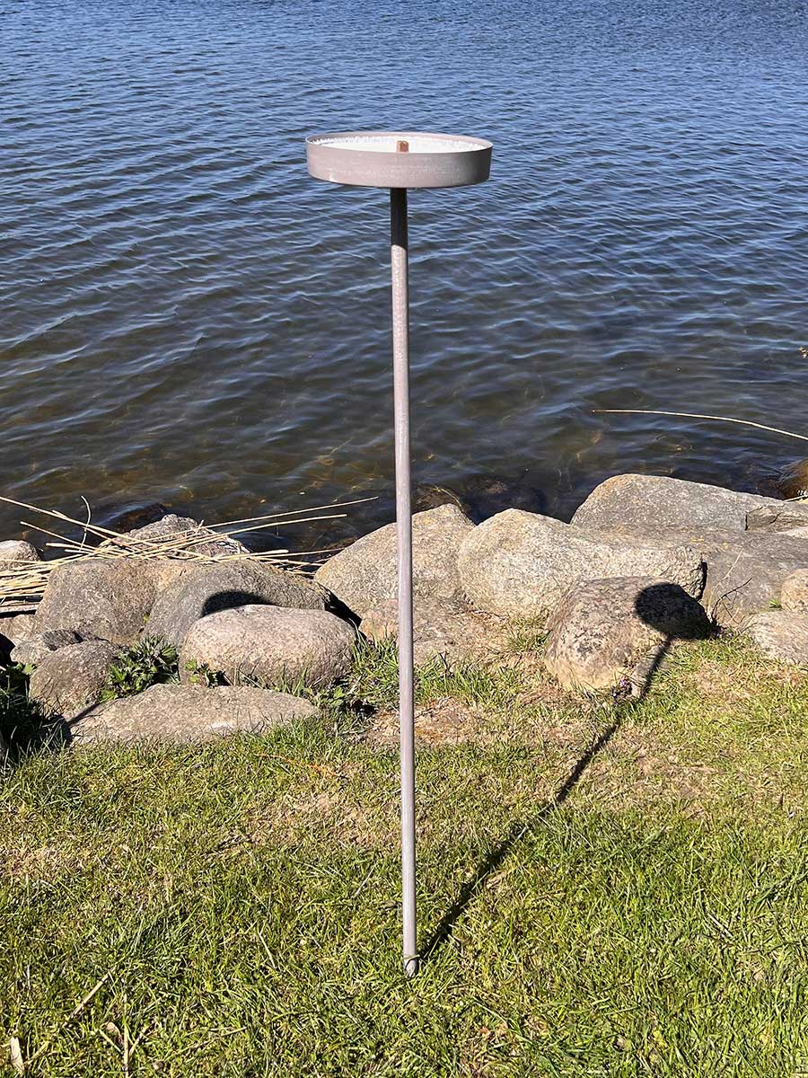 Metallstab, Gartenstecker, Flammschalenhalter in taupe. Die flache Schale wird auf den Stab geschraubt und kann sehr vielseitig dekoriert werden. Ideal geeignet zum Einsetzen einer Flammschale bis 16,5 cm oder für ein Windlicht mit dicker Stumpenkerzen. Die Schale kann auch wunderbar floral geschmückt werden mit einem Kranz oder einer Pflanzschale.