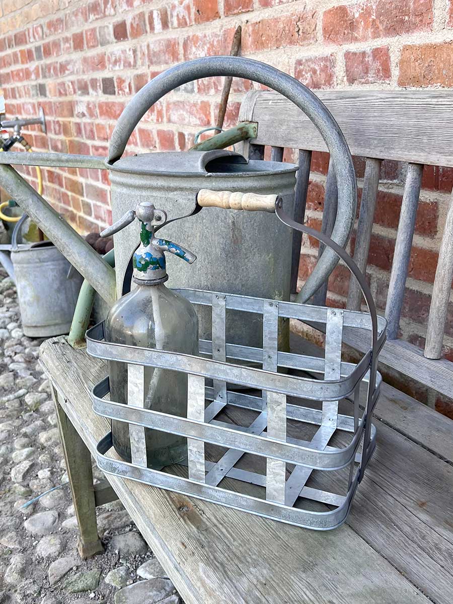 Charmanter Zink Tragekorb mit Holzgriff, tolles stimmungsvolles Landhausdesign.