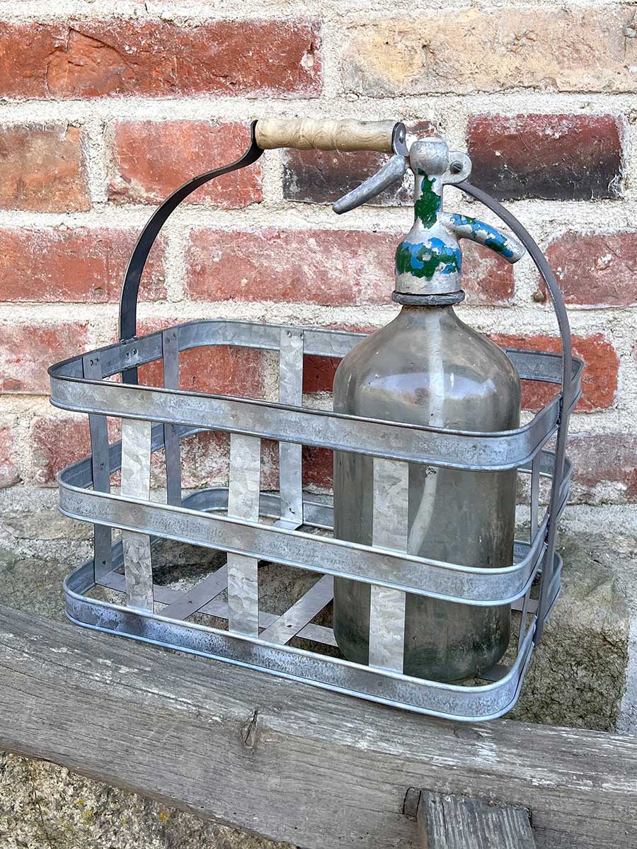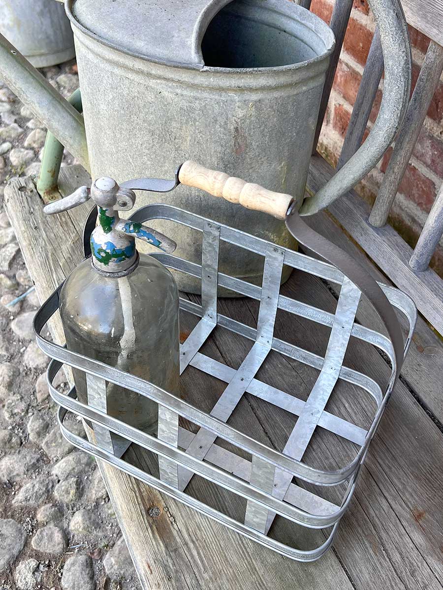 Metall Zink Tragekorb rechteckig Holzgriff Landhausstil H31