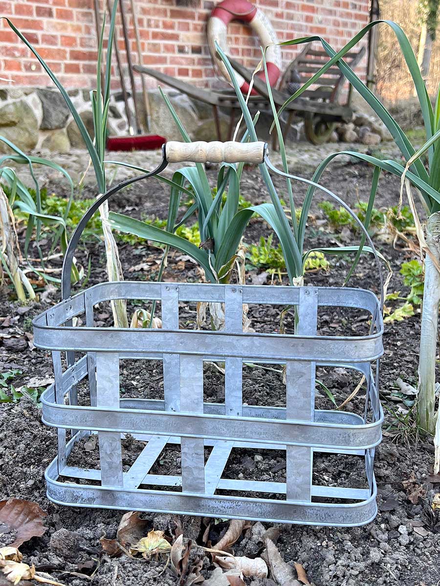 Metall Zink Tragekorb rechteckig Holzgriff Landhausstil H32
