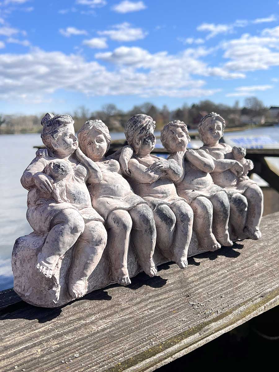 Lieferumfang: 1 x 5 Frauen sitzen auf der Mauer Polyresin Figur