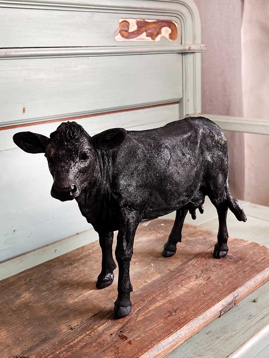 Dekorative schwarze Kuh aus Polyresin