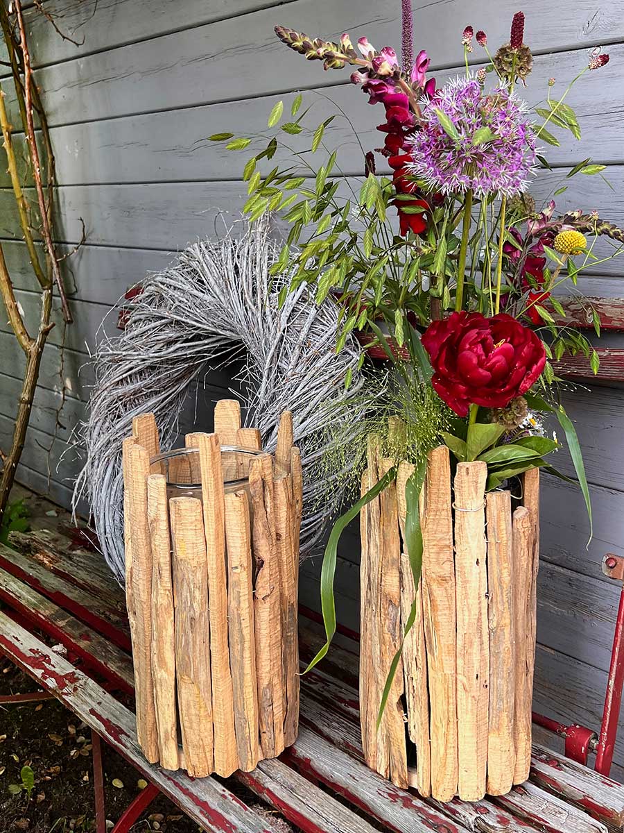 Holz ist ein Naturstoff, der sich mit der Zeit verändert, Risse, Knastlöcher und Unregelmäßigkeiten aufweisen kann, diese Merkmale sind kein Mangel. Jedes Treibholz-Windlicht fällt anders aus.