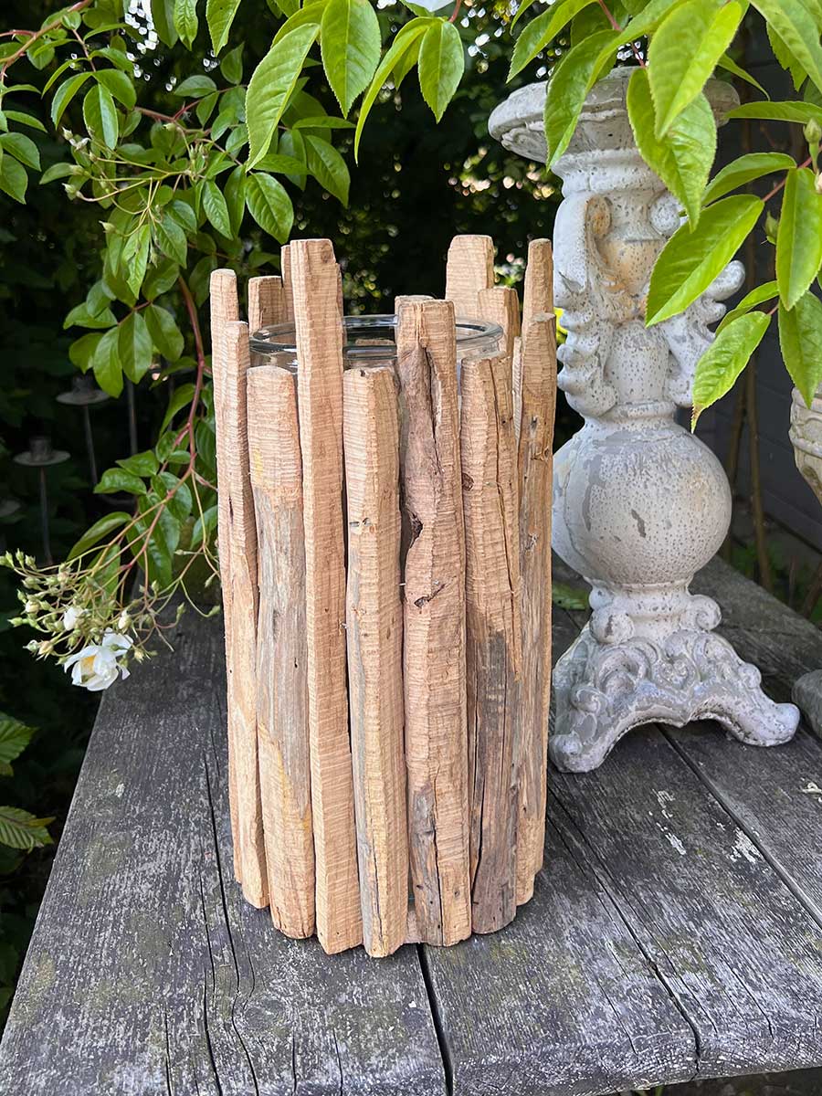 Lieferumfang: 1 Glas-Windlicht Kerzenhalter XL Treibholz rund rustikal H38 D21