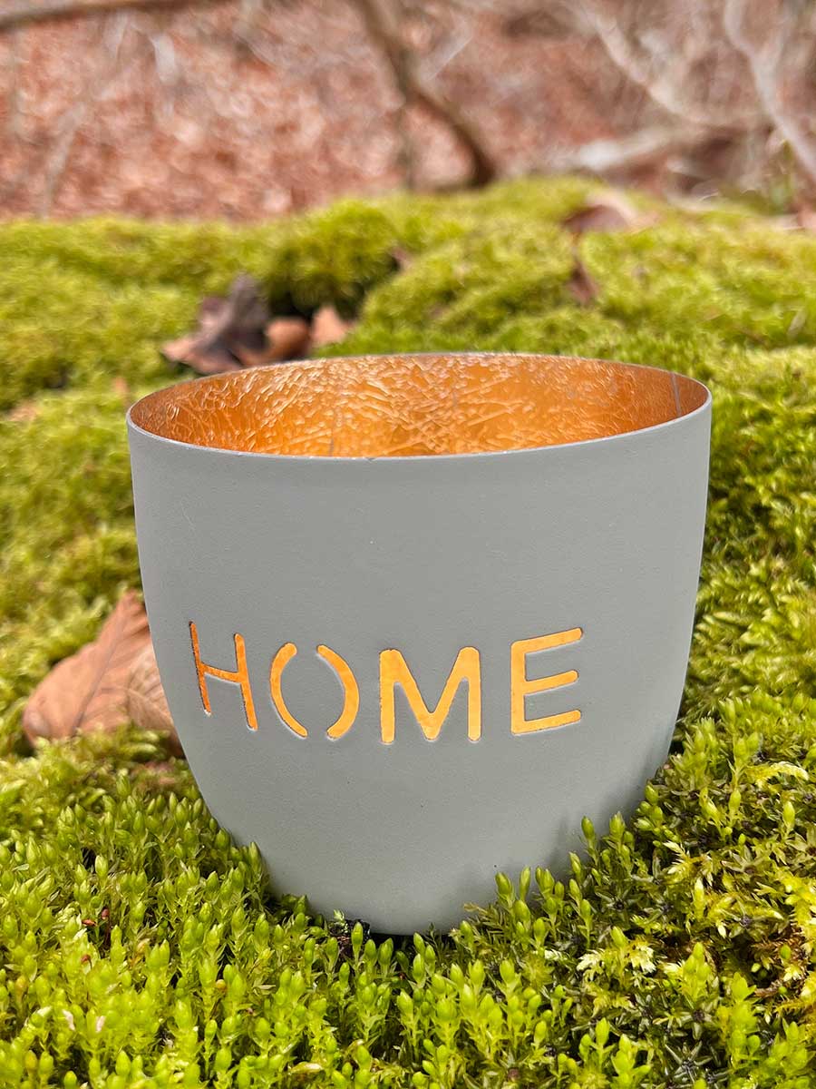 Die Madras Windlichter von GiftCompany zaubern durch die goldfarbene Innenbeschichtung im Schlagmetall-Design eine unvergleichliche warm-heimelige Atmoshäre in Dein Zuhause. Mit einem Teelicht erwacht der ausgestanzte Spruch so richtig zum Leben. Wir empfehlen, das Teelicht mit einer kleinen Glasschale in das Windlicht zu stellen um Wachsverunreinigungen zu vermeiden. Durch die Fertigung in Handarbeit kann es zu kleinen Unebenheiten und Abweichungen kommen, die jedes Stück zu einem Unikat machen.