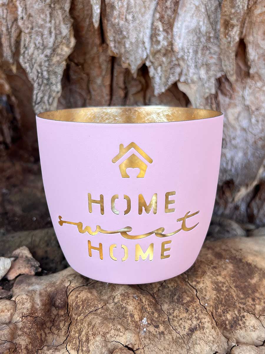 Lieferumfang: 1 Madras Windlicht M Home sweet Home rosa-gold von GiftCompany