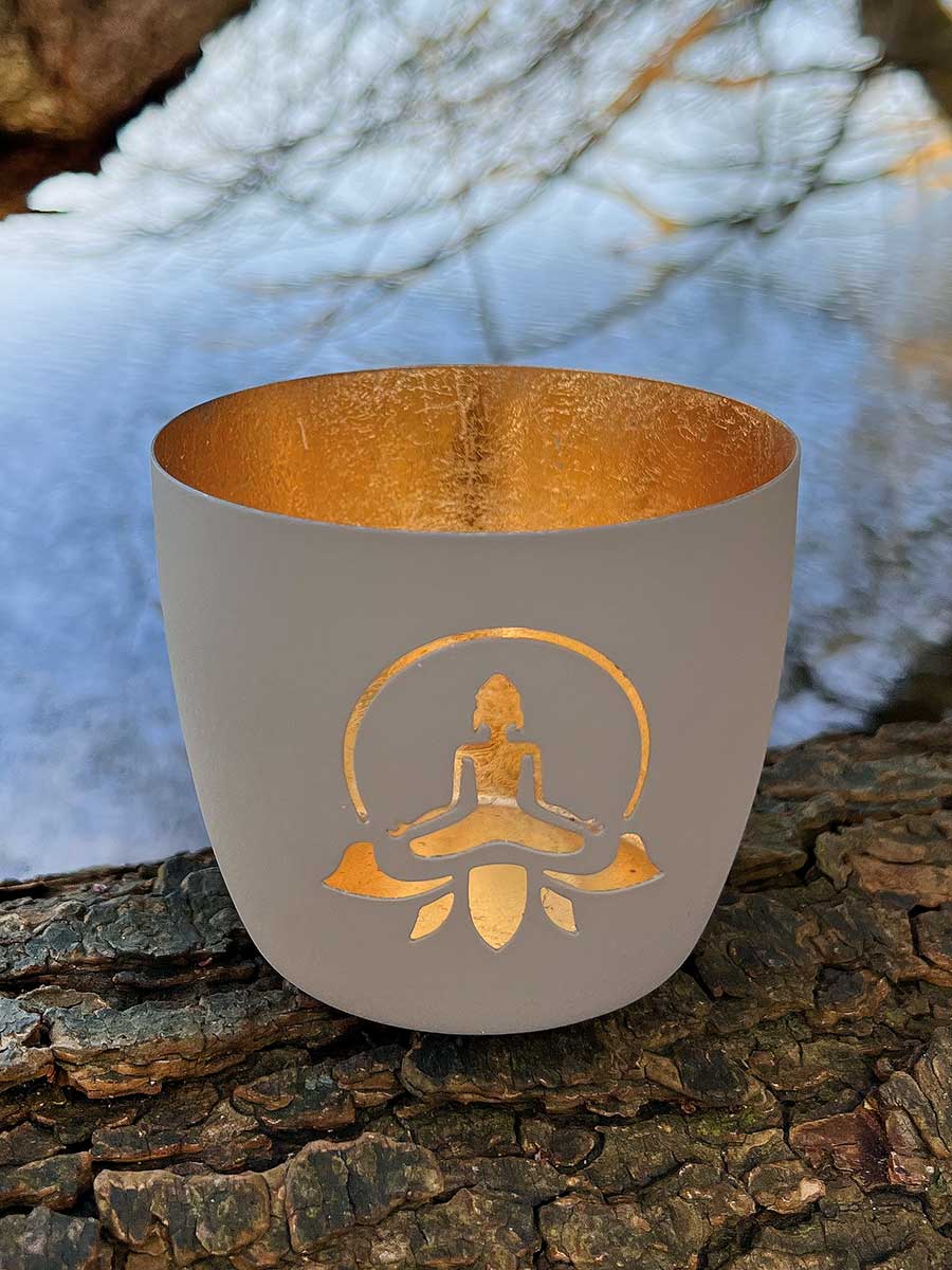 Lieferumfang: 1 Madras Windlicht M Lotus Yoga sandstone-gold von GiftCompany
