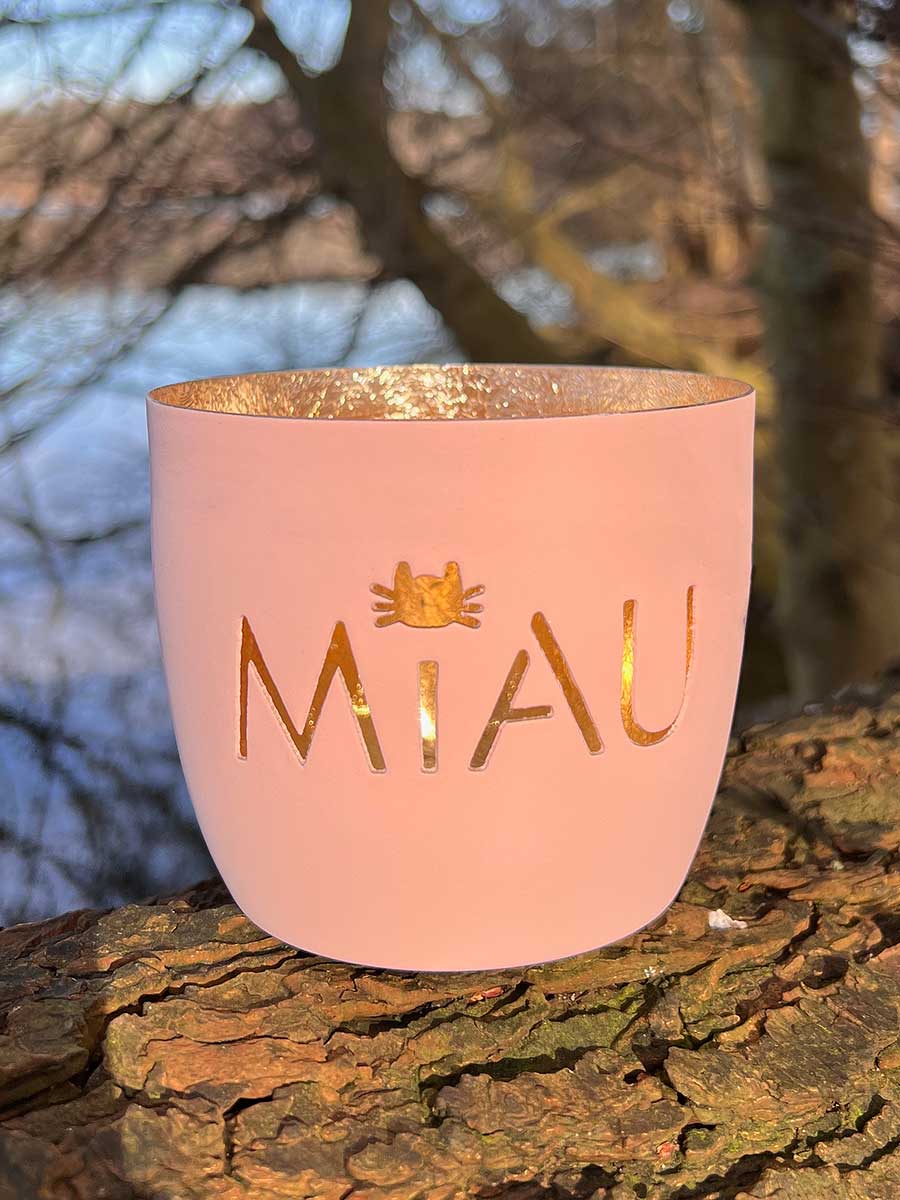 Madras Windlicht M Miau pastellrosa-gold GiftCompany