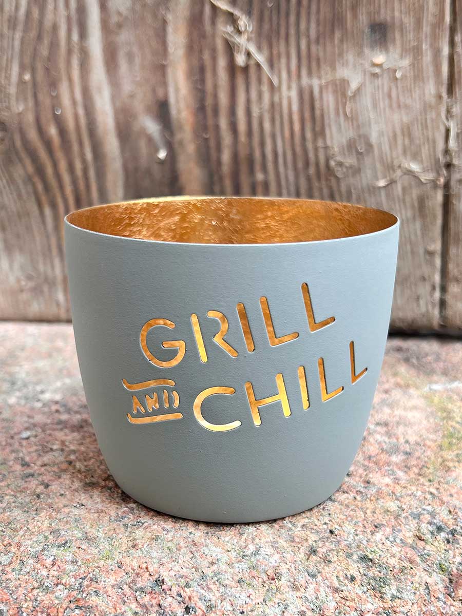 Madras Windlicht M Motiv Grill and Chill flannel-gold GiftCompany 8,5 cm