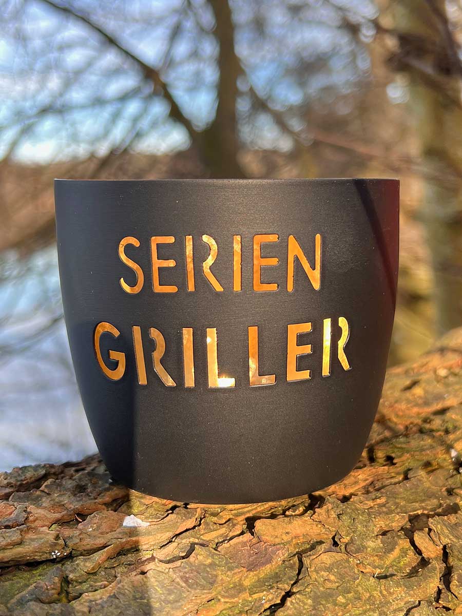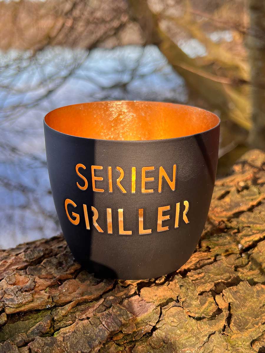 Lieferumfang: 1 Madras Windlicht M Motiv Seriengriller schwarz-gold von GiftCompany