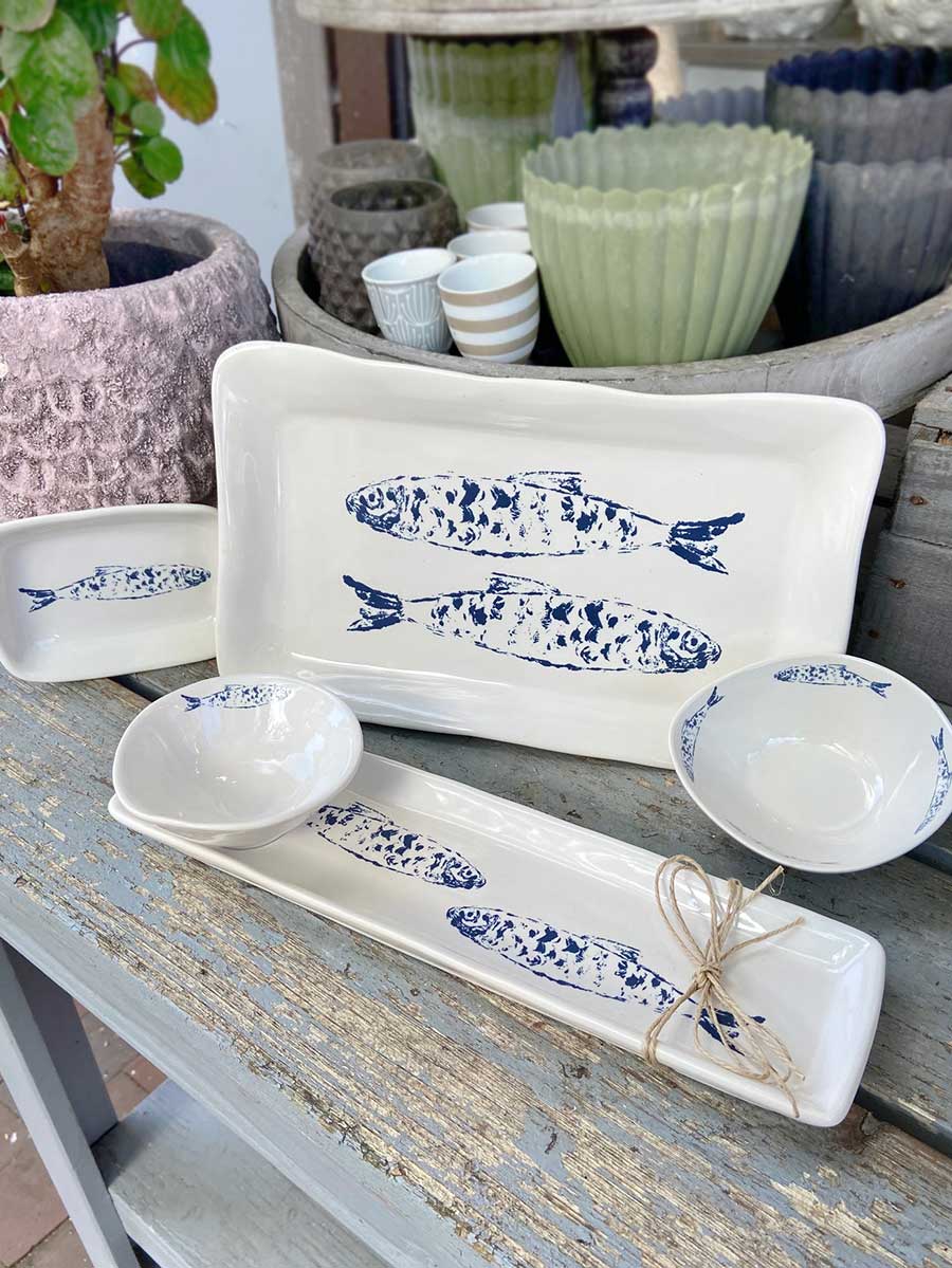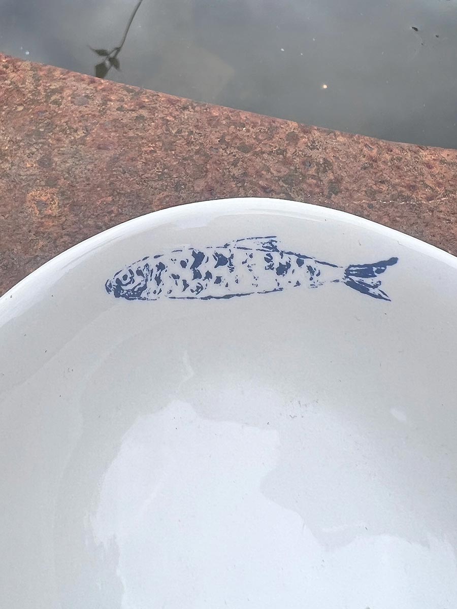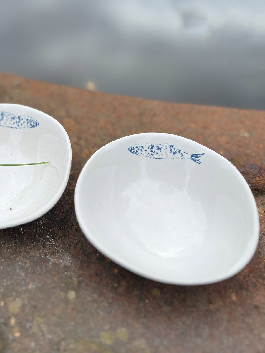 Hübsches maritimes Mini-Dip-Schälchen mit blauem Fischdekor aus Porzellan. Ein vielseitiges Schälchen für Dips, Oliven, Antipasti oder Knabberkram mit einem ausgefallenen Design.