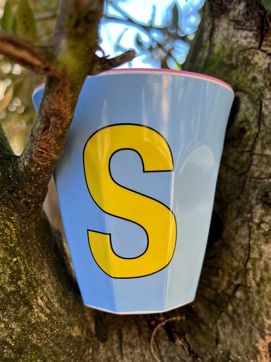 Lieferumfang: 1 Rice Melamin Becher hellblau Buchstabe S