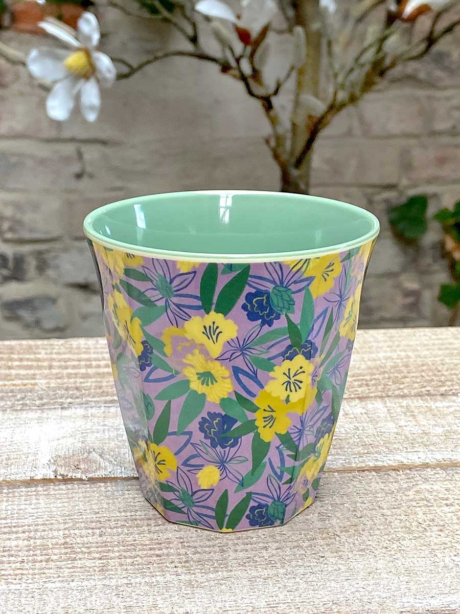 Rice Melamin Becher medium lila grün gelbe Blumen