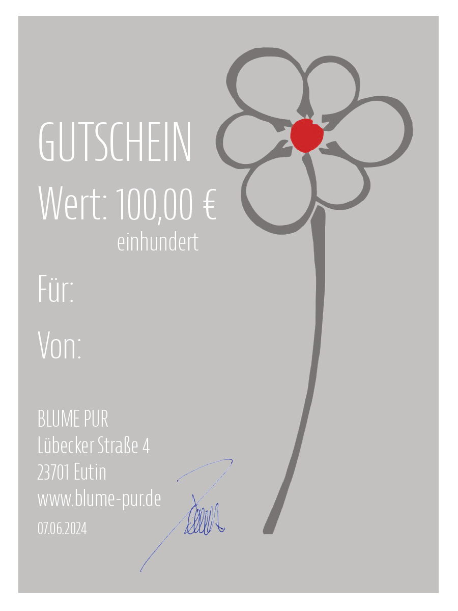 Lieferumfang: 1 Geschenkgutschein im Wert von 100,00 EUR