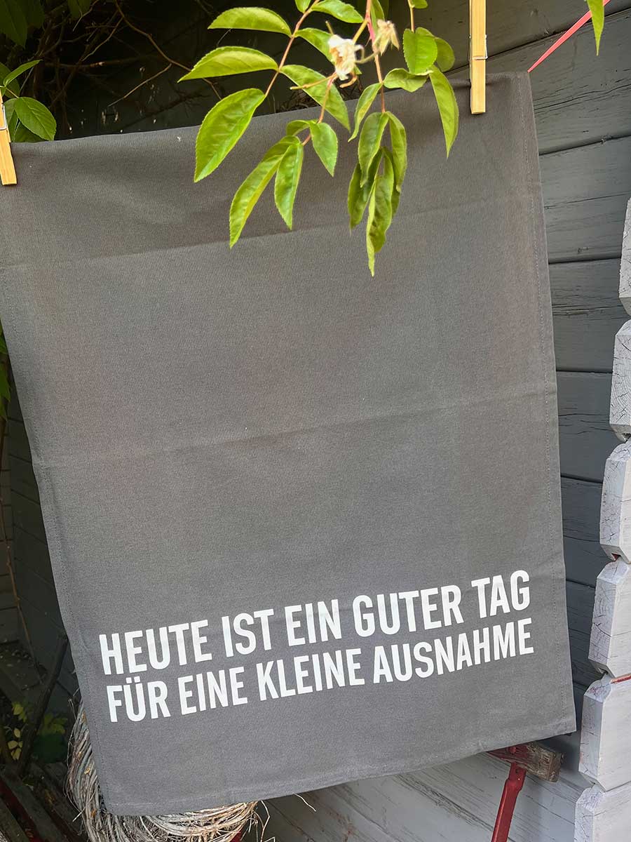 Lieferumfang: 1 Geschirrhandtuch "Heute ist ein guter Tag für eine kleine Ausnahme" aus Baumwolle von 17;30