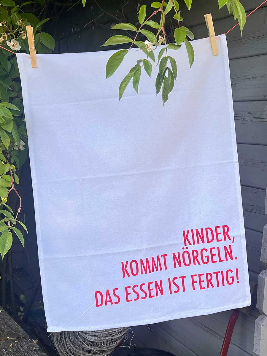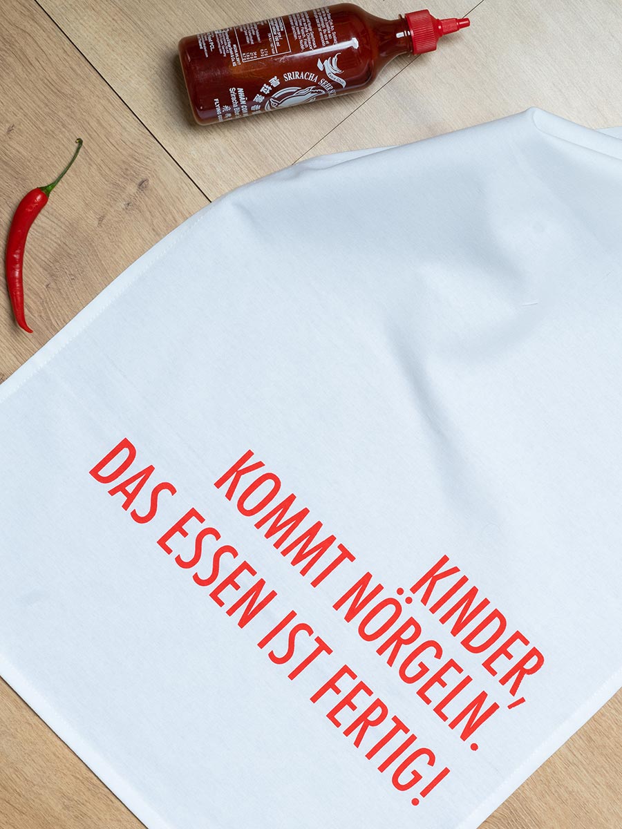 Lieferumfang: 1 Geschirrhandtuch "Kinder, kommt nörgeln. Das Essen ist fertig!" aus Baumwolle von 17;30