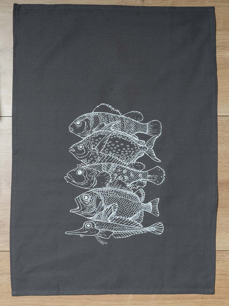 17;30 - Geschirrhandtuch schwarz weiße Fische Baumwolle