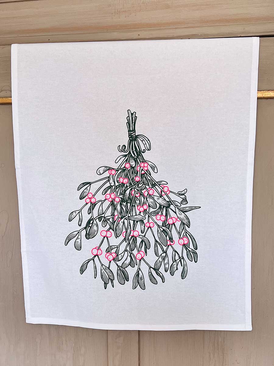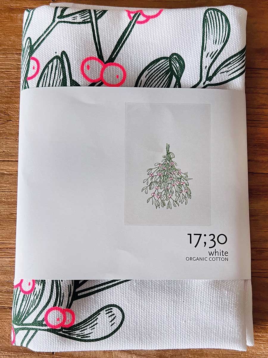 17;30 - Geschirrhandtuch weiß Mistelzweig Baumwolle