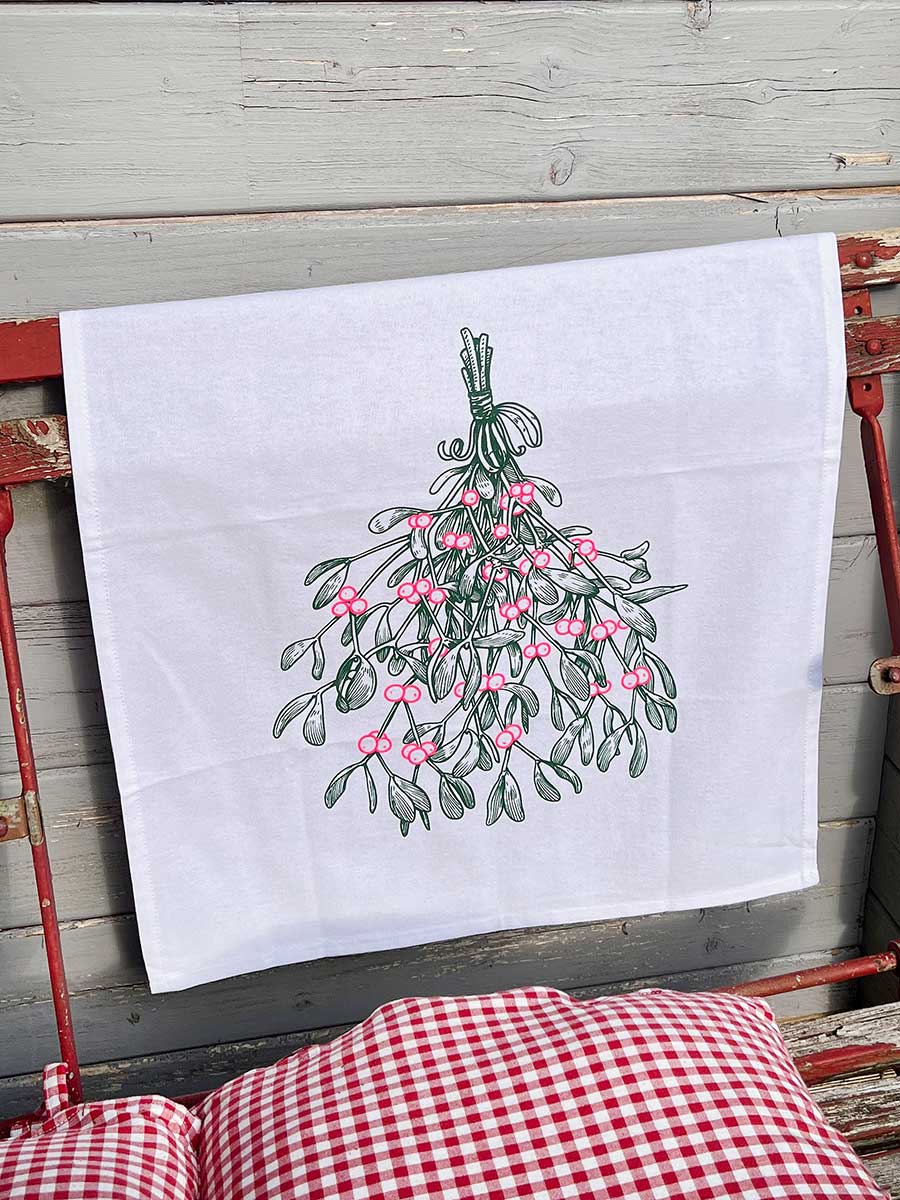 Lieferumfang: 1 Geschirrhandtuch weiß Mistelzweig aus Baumwolle von 17;30
