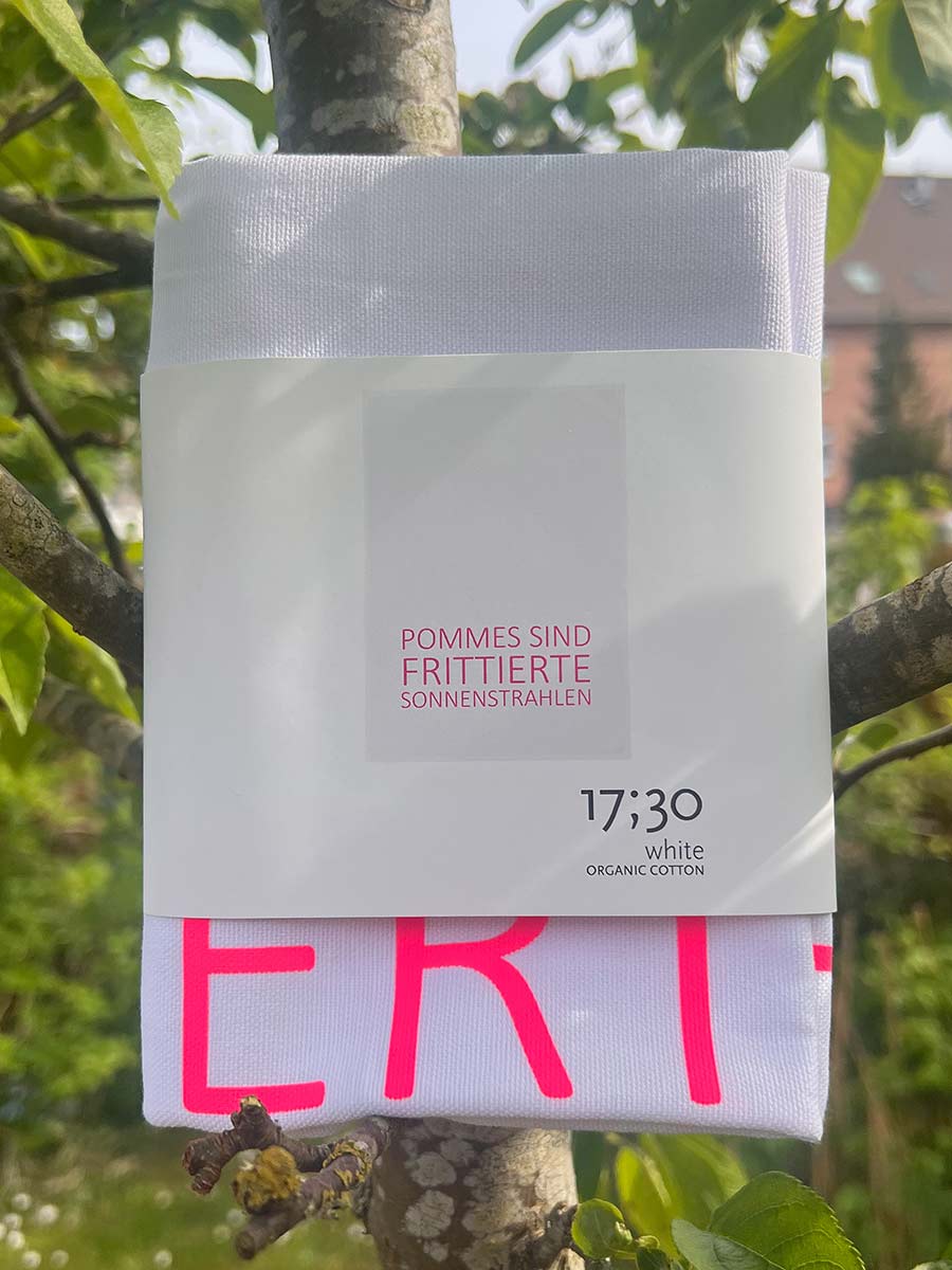 17;30 Geschirrhandtuch weiß "Pommes sind frittierte Sonnenstrahlen" aus Baumwolle...