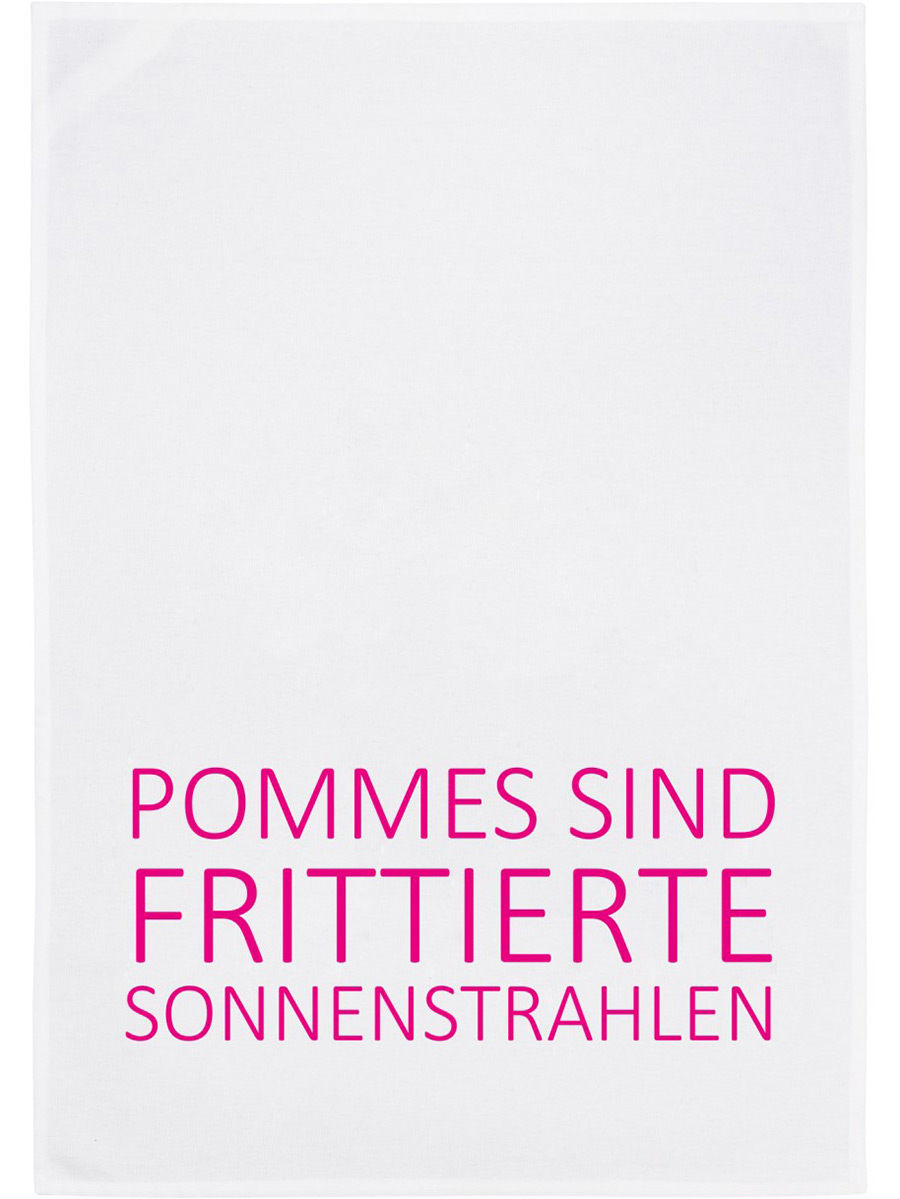 17;30 - Geschirrhandtuch weiß "Pommes sind frittierte Sonnenstrahlen" Baumwolle