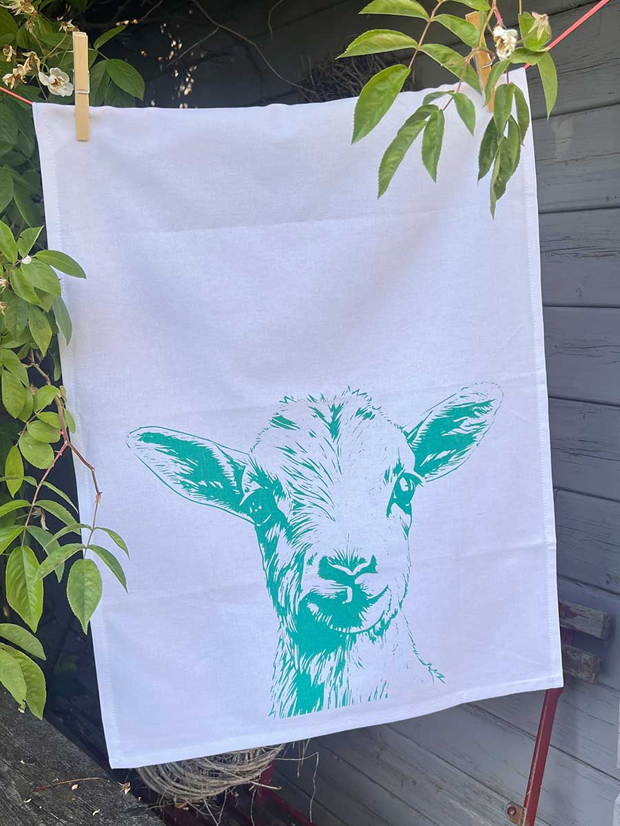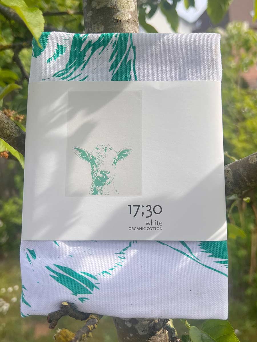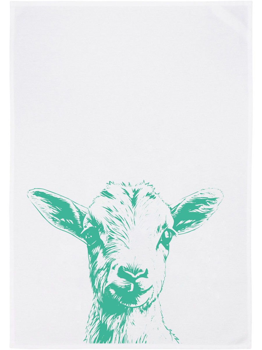 17;30 - Geschirrhandtuch weiß "Ziege in türkis" Baumwolle
