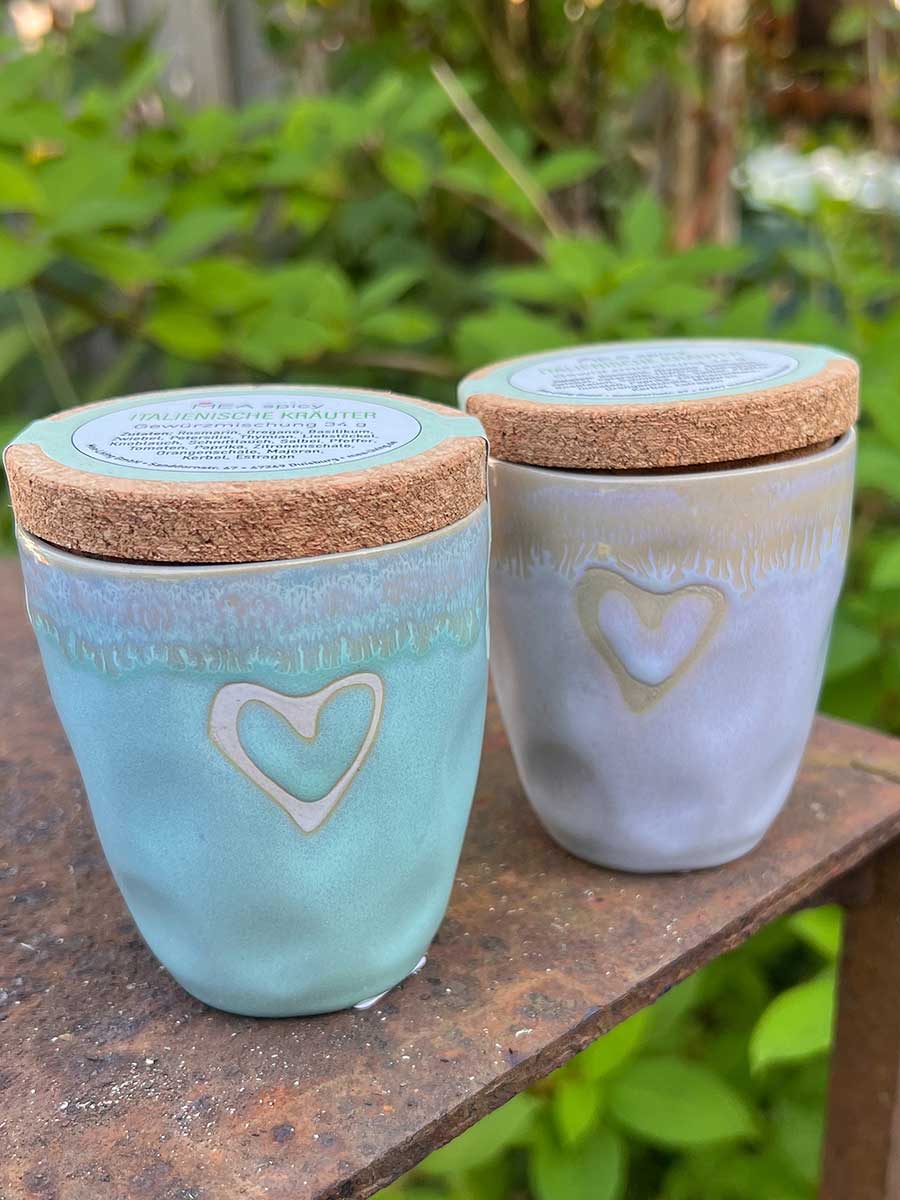 MEA Living Spicy Gewürz italienische Kräuter 34 g Stoneware-Becher Herz türkis
