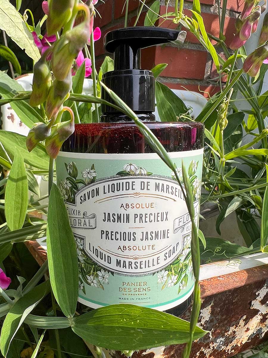 Natürliche Flüssigseife aus Marseille von Panier des Sens, hergestellt aus wertvollen Ölen der Provence. Sie enthält Blütenextrakte aus Jasmin. Die Flüssigseife wird in traditionellen Kupferkesseln hergestellt. Der dekorative Spender ziert Küche und Bad und ist für die ganze Familie und alle Hauttypen geeignet. Sie beinhaltet 96% natürliche Inhaltsstoffe.