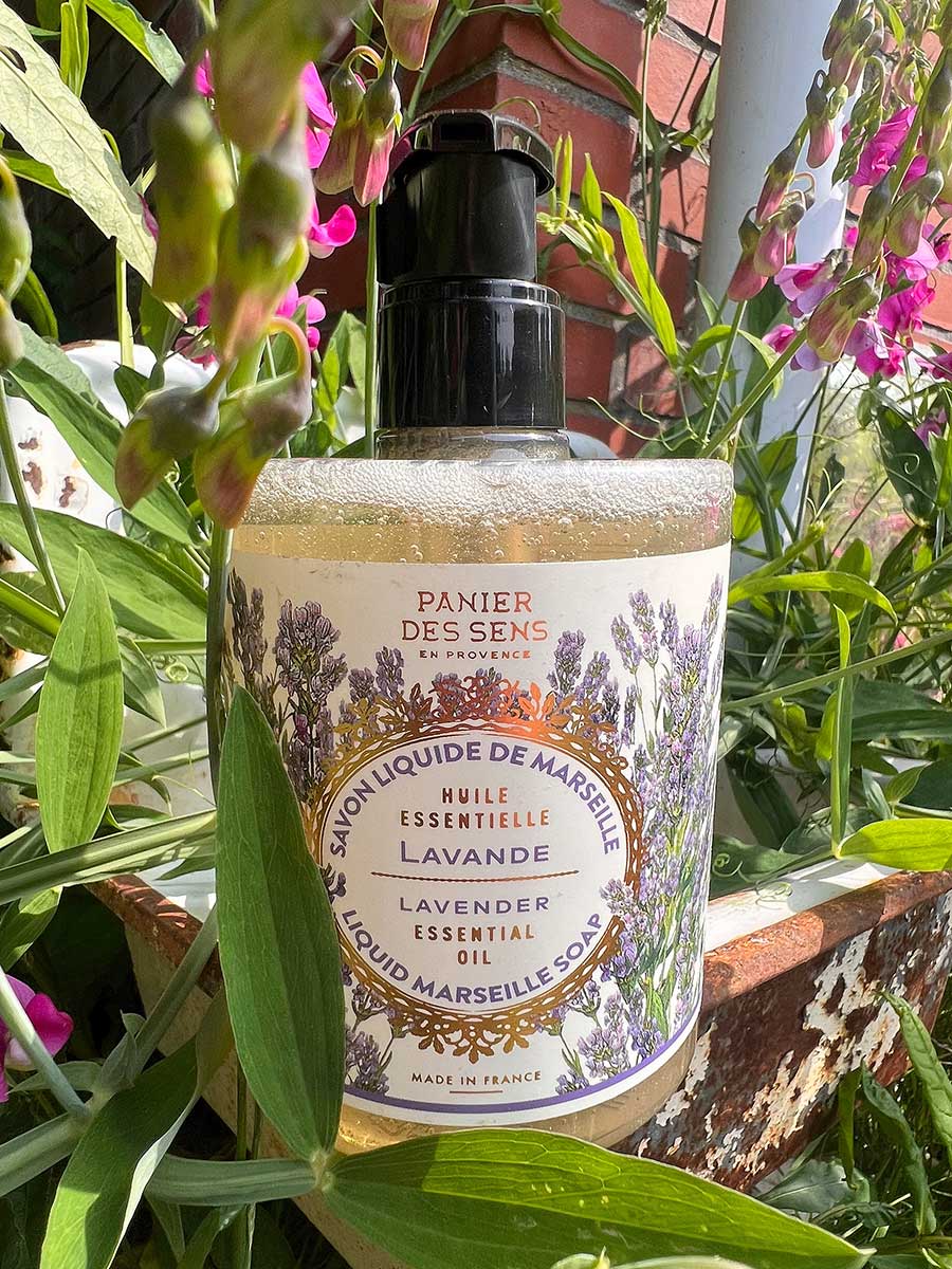 Natürliche Flüssigseife aus Marseille von Panier des Sens, zart parfümiert mit Blütenextrakten aus Lavendel. Die Flüssigseife wird in traditionellen Kupferkesseln hergestellt. Der dekorative Spender ziert Küche und Bad und ist für die ganze Familie und alle Hauttypen geeignet. Sie beinhaltet 97% natürliche Inhaltsstoffe.