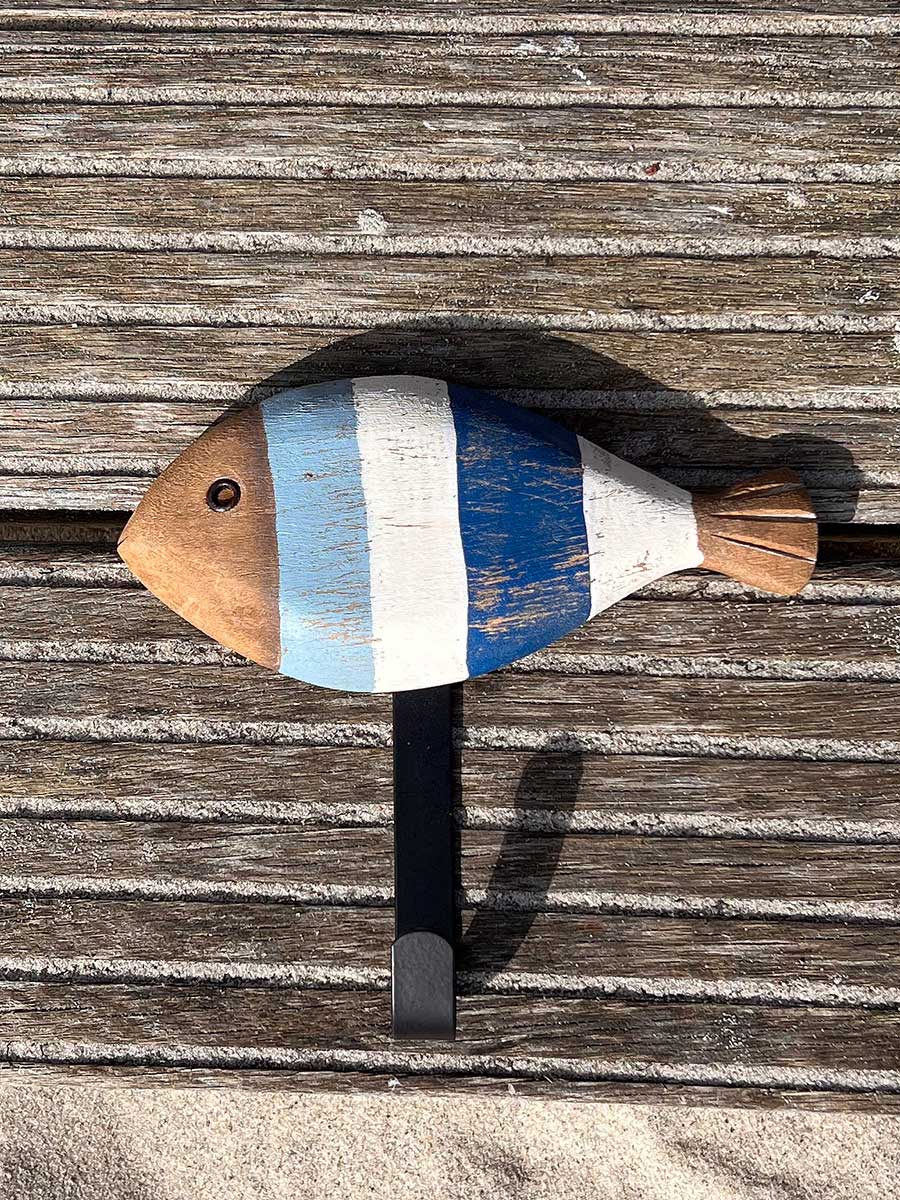 Kleine Garderobe Holzfisch weiß hellblau gestreift 1 Haken von Batela