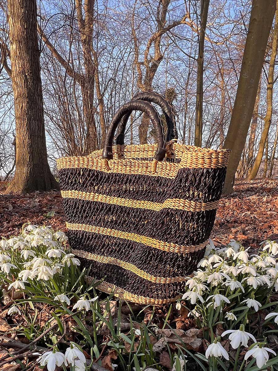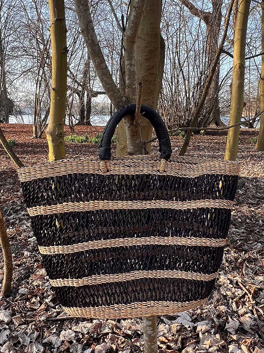 Bolga Korb Korbtasche Shopper schwarz natur Netz Elefantengras Lederhenkel