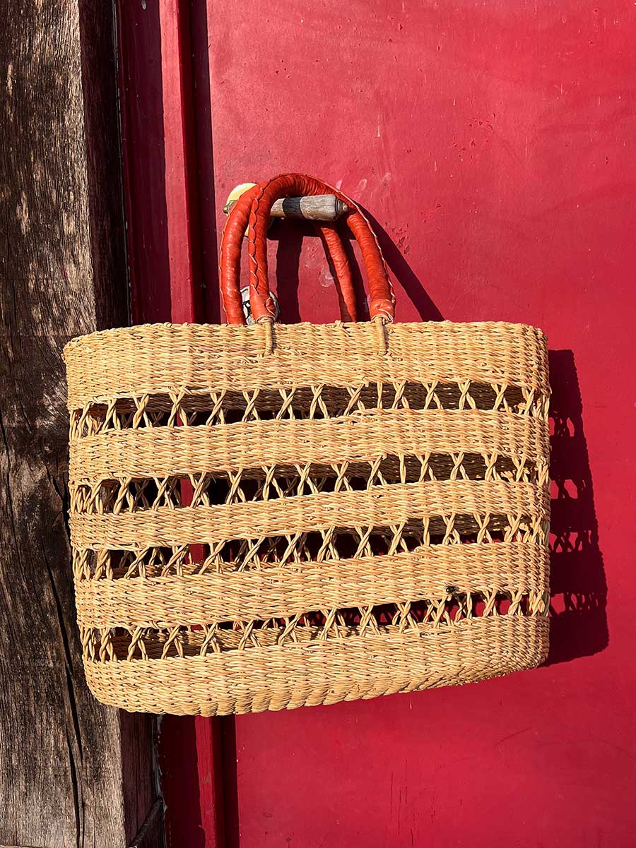 Bolga Korbtasche Shopper natur Netz Elefantengras Lederhenkel