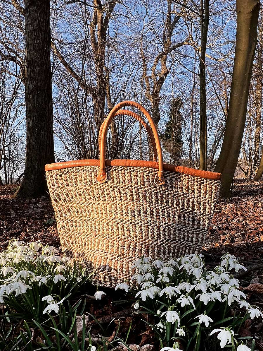 Sisal Korb Korbtasche Shopper XL beige braun Lederhenkel