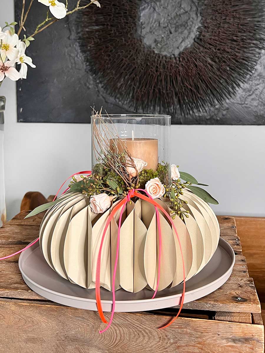 Papiersockel Papierkranz Faltkranz Dacia greige D28 H13