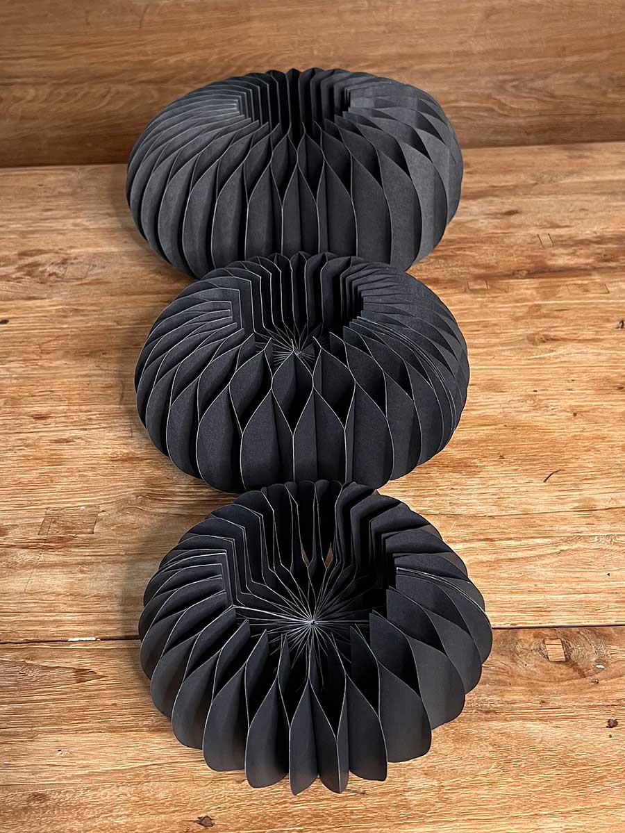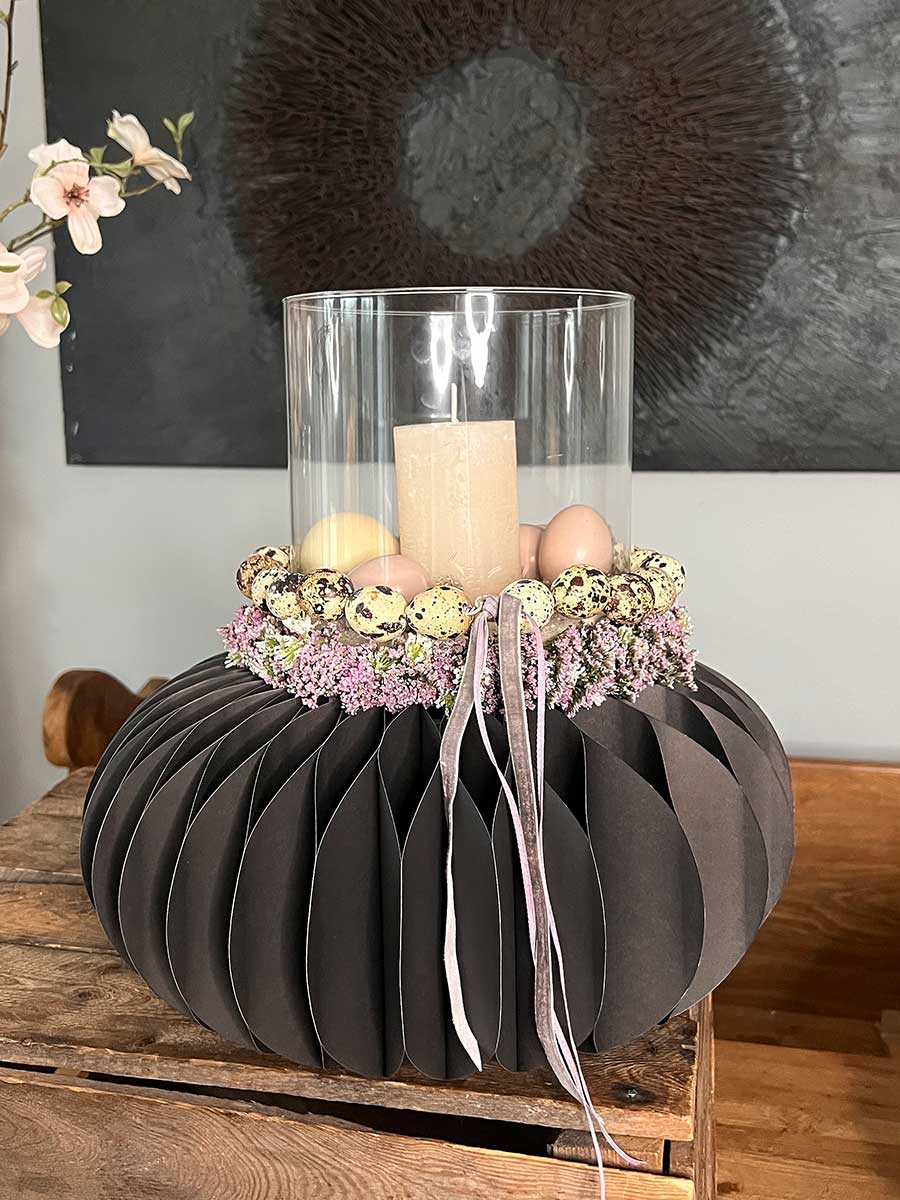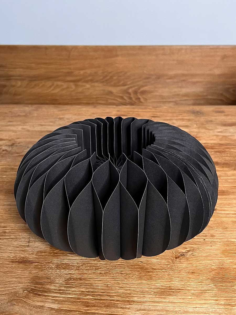 Zauberhafter Papier Faltkranz Dacia mit Magnetverschluß in schwarz. Die Kränze lassen sich wunderbar jahreszeitlich unterschiedlich dekorieren. Zur Lagerung lassen sie sich platzsparend zusammenfalten.