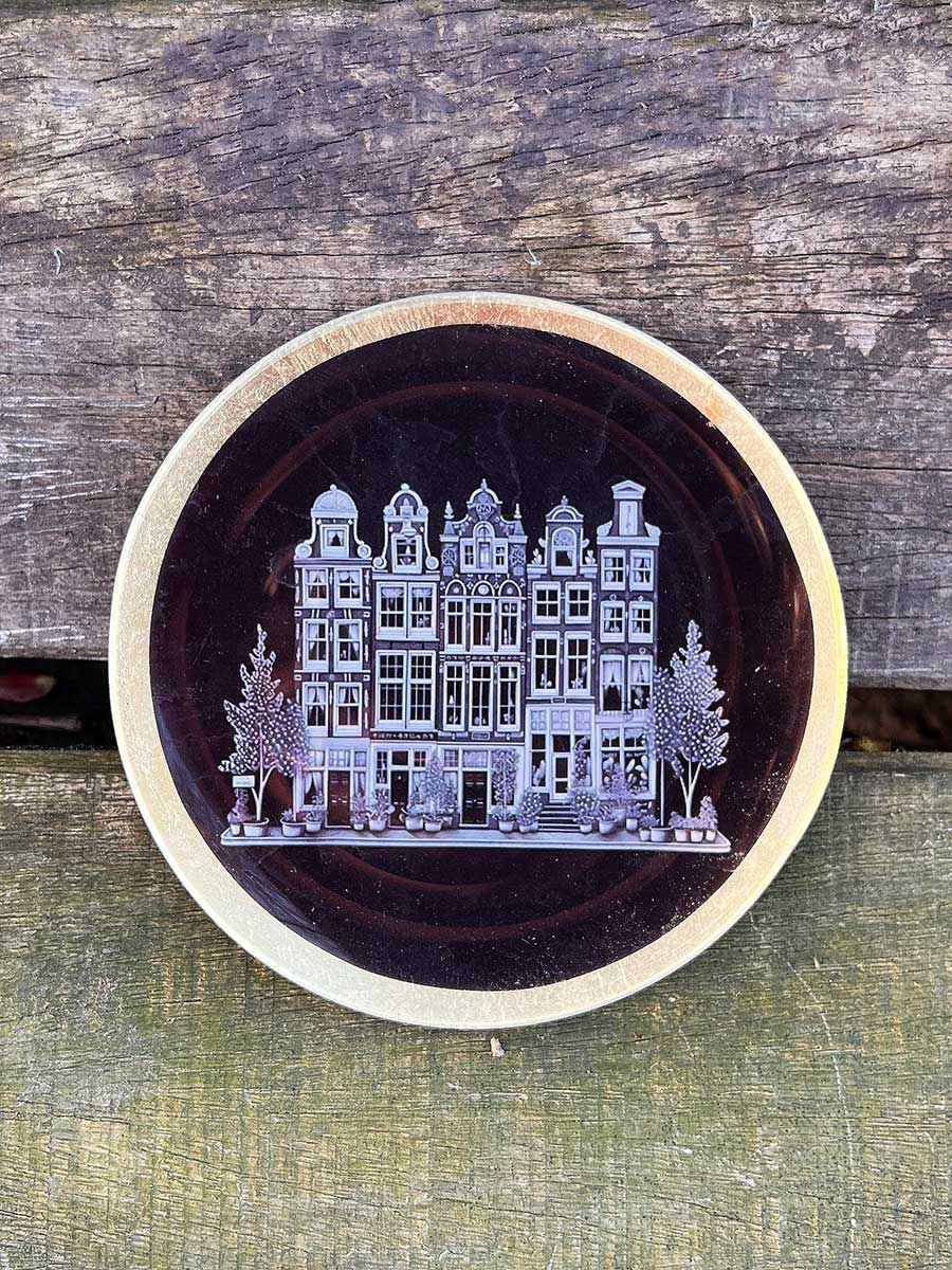 Love Plate Glasteller M Townhouses rund schwarz gold GiftCompany