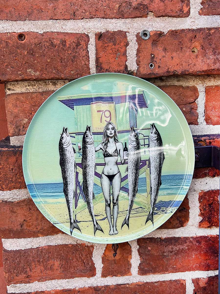 Love Tray Metallteller M Beachgirl Fische hellgrün D22.8 GiftCompany