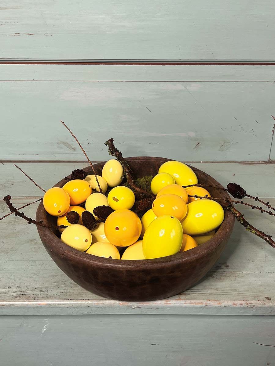 12er Pack ausgeblasene Gänseeier gelb lackiert, in verschiedenen Farbabstufungen