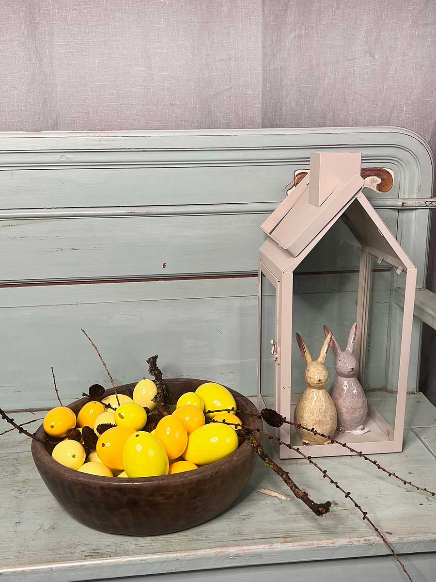 Lieferumfang: 1 x 12er Pack Gänse-Eier gelb lackiert H8
