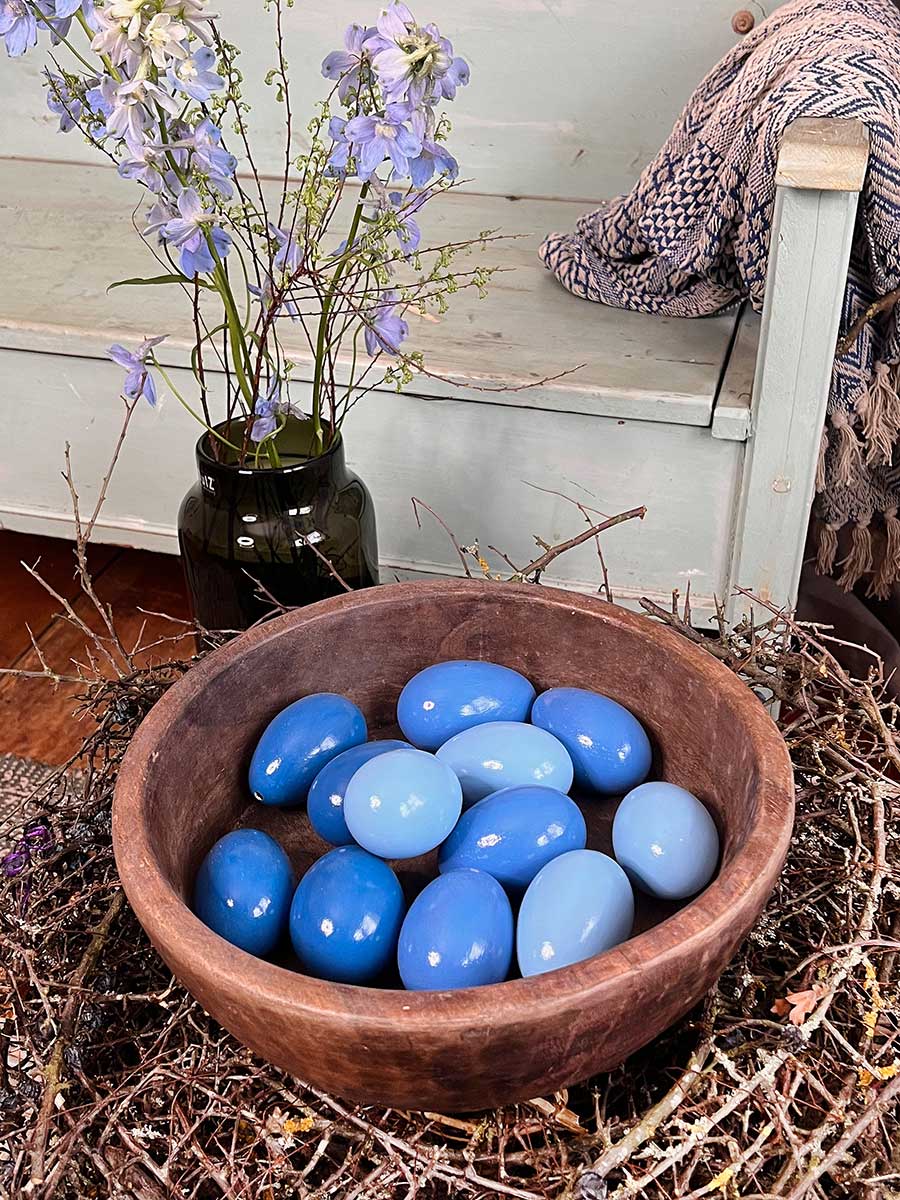 Lieferumfang: 1 x 12er Pack Hühner-Eier blau lackiert H6