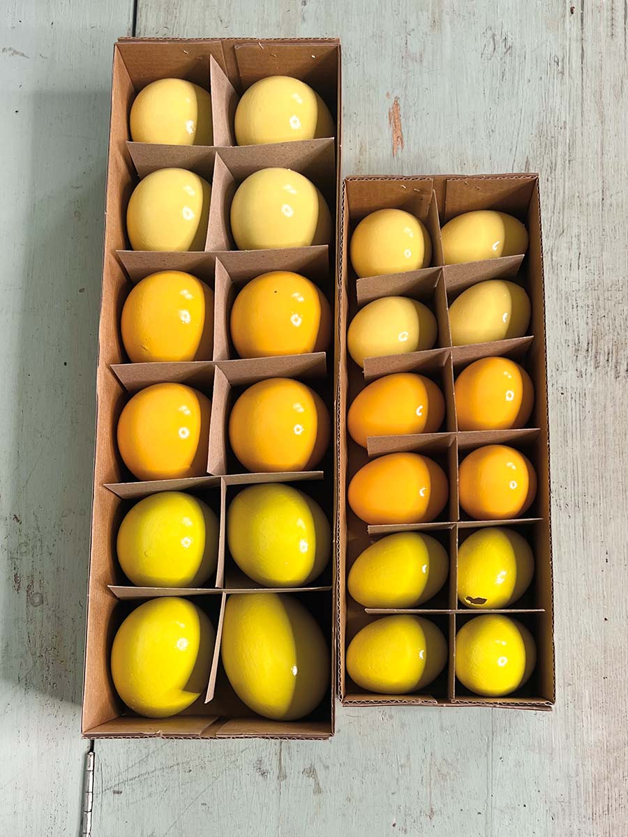 12er Pack ausgeblasene Hühnereier gelb lackiert, in verschiedenen Farbabstufungen