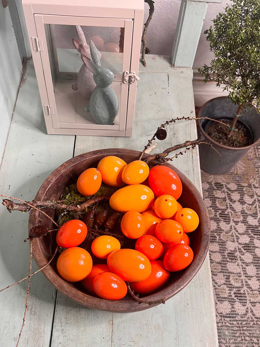 Lieferumfang: 1 x 12er Pack Hühner-Eier orange lackiert H6