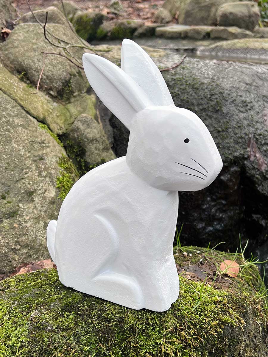 Lieferumfang: 1 Bemalter weißer Holzhase Osterhase Hase geschnitzt Größe L