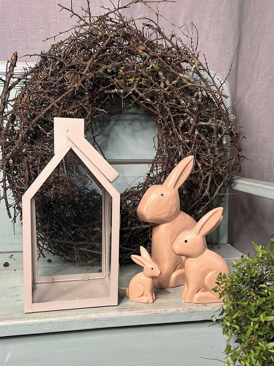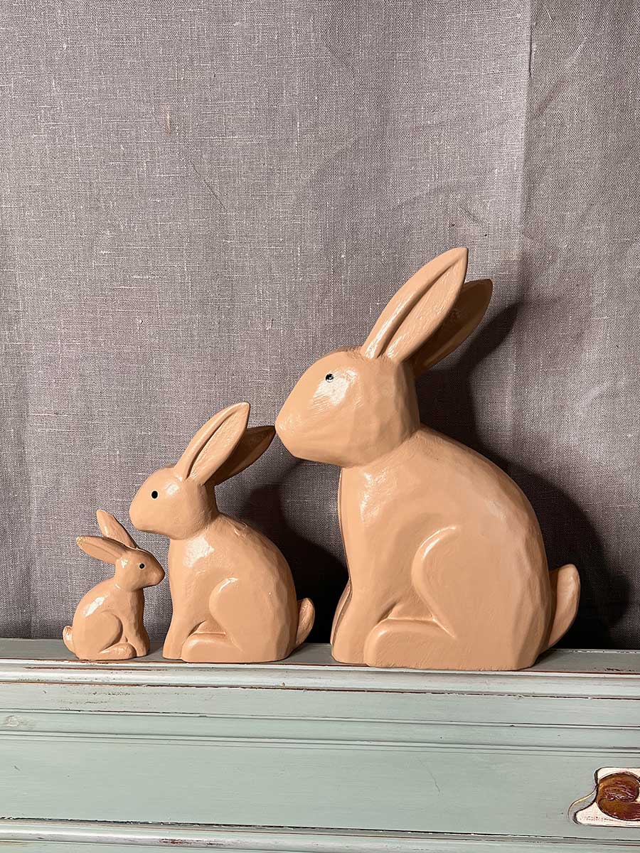 Bemalter brauner Holzhase Rabbit in Schnitzoptik, tolle Osterdekoration. Besonders hübsch wirkt der Hase in Kombination mit den anderen Größen und Formen