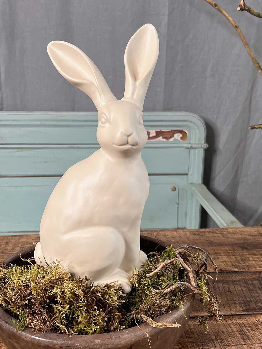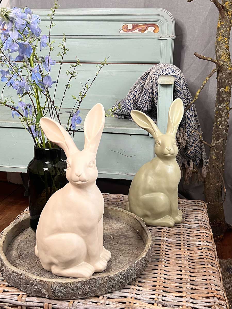 Cremefarbener Keramik Osterhase "Colin" in sitzender Haltung von Vosteen. Hübsche Landhausdekoration, innen hohl.