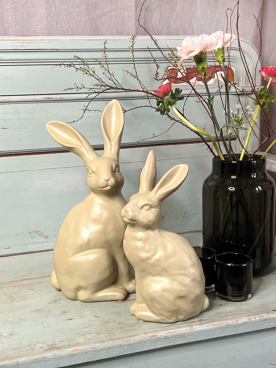 Hellgrüner Keramik Osterhase "Colin" in sitzender Haltung von Vosteen. Hübsche Landhausdekoration, innen hohl.