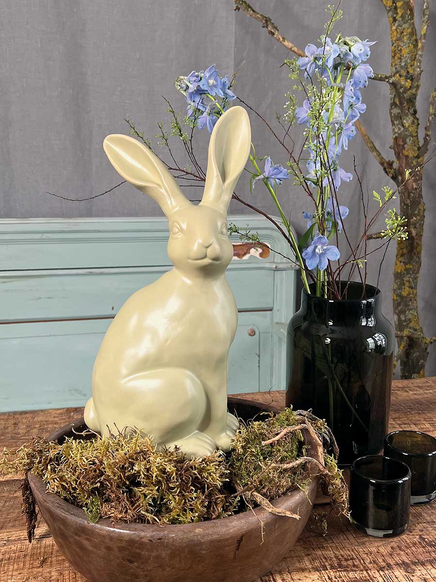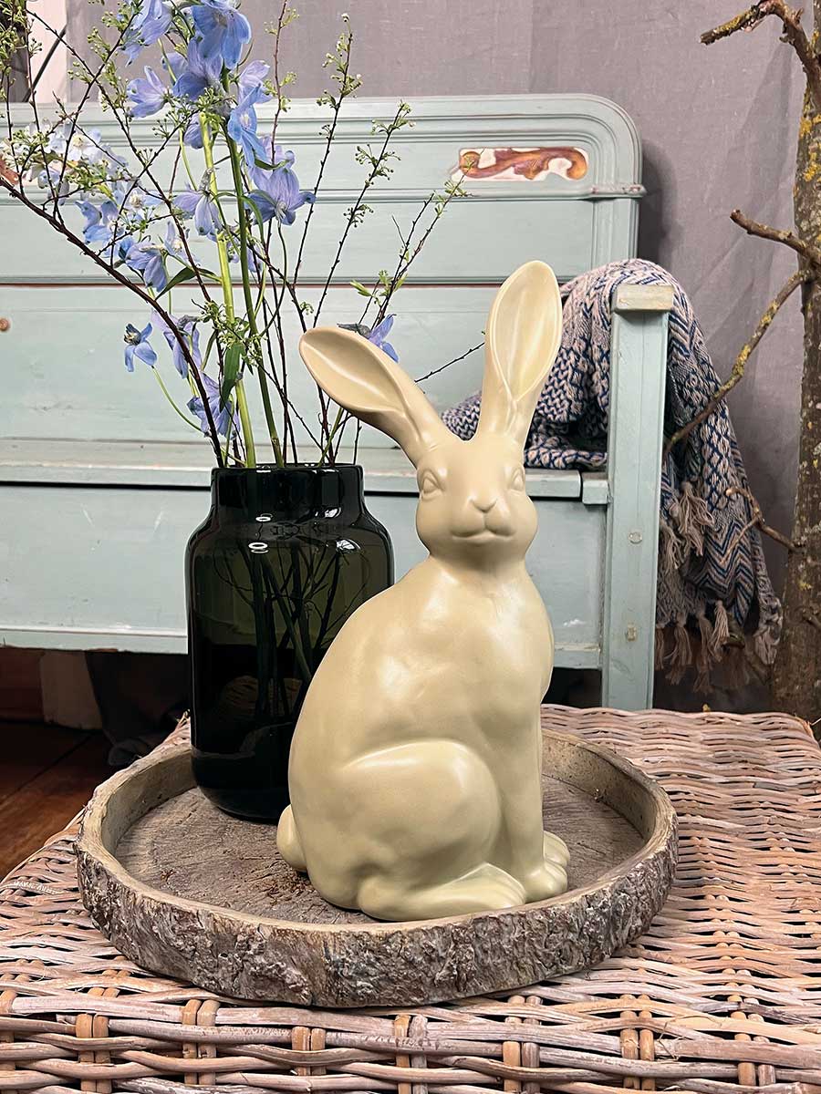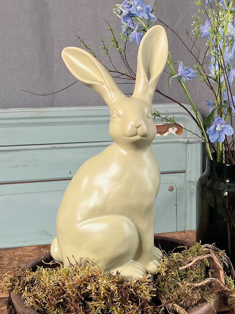 Hellgrüner Keramik Osterhase "Colin" in sitzender Haltung von Vosteen. Hübsche Landhausdekoration, innen hohl.